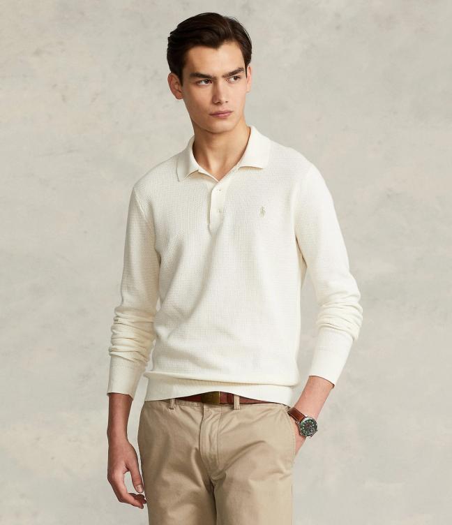 The timeless take on the traditional style is spun from premium cotton, and adorned with the iconic ‘Polo’ logo on the chest. Finished with genuine mother-of-pearl buttons, it’s an Ivy League-worthy bit of knitted kit.