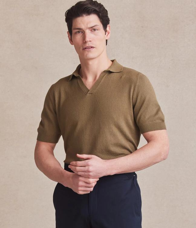 In a fetching shade of khaki, New & Lingwood’s latest chic polo shirt reflects the British brand’s exciting new, textured direction. Woven from silk, it’s the ideal soft-to-touch summer garment.