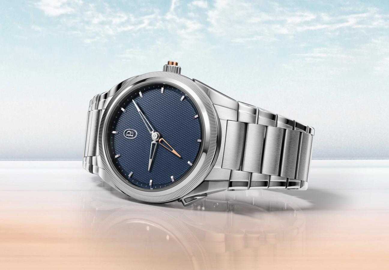Swoon, if you will, at that fine barleycorn guilloché pattern, sweeping across that “Milano Blue” dial. Perfectly twinned with finely knurled single-piece platinum bezel. The polymath brand from the brand of Michel Parmigiani finally comes of age, in super-suave fashion with a single watch.