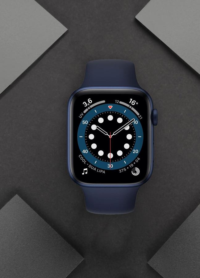 From a compass to a microphone, the Series 6 covers all the basics — and does much, much more. It measures your blood oxygen (this really is the latest achievement in the smartwatch biological canon, it seems) and it comes equipped with a wireless chip, Bluetooth, magnetic charging cable, gyroscope, Apple Pay, a battery life of 18 hours and a water resistance of 50 metres. What more is there?