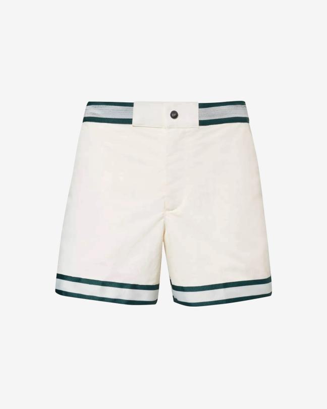 Celebrated for its playful prints, vibrant hues and all-round superlative swimwear, we, of course, have to turn to Orlebar Brown in this shortlist. The Setter shorts offer a more tailored fit (the shaped waistband, concealed snap closure and the label’s signature side fasteners allow for an extremely well-cut silhouette), and the quick-drying recycled polyamide from which it’s made has a touch that sits somewhere between lustrous and substantial. Additionally, because it cuts close to the thigh, we recommend pairing it with something equally as sharp – a Sunspel T-Shirt and minimalist sneakers will do the job when bar-hopping in Lisbon.