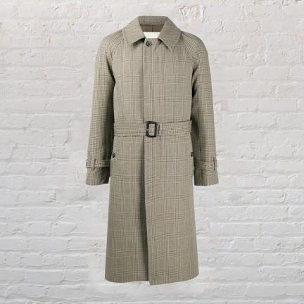We’ll save you the trouble of looking up ‘GSC Senator Romanus’ from the patch on Gucci’s coat – it’s the brand poking fun at the pageantry of royal appointments. What does pander to tradition, however, is the heritage houndstooth pattern woven throughout the heavy wool-blend, along with a buttoned throat latch from more classic trenches. It’s designed in a notably oversized shape that makes quite the impact. Mackintosh’s coat is tailored in the UK from a versatile wool blend, patterned with a traditional houndstooth check in tonal-beige and features classic belted cuffs and concealed front fastening. It’ll envelop any suit nicely — but looks equally good thrown over a T-shirt and jeans.