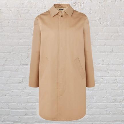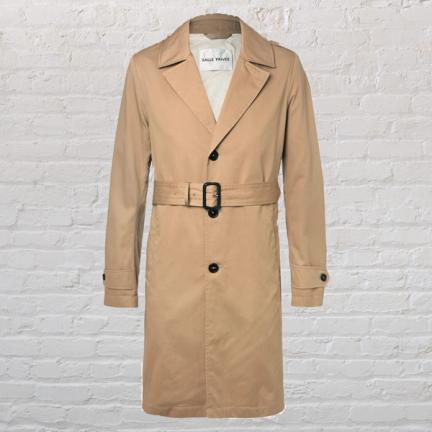 From a distance, A.P.C‘s coat looks like a traditional tailored style, but it’s medium weight and satin lining makes it the perfect piece for autumn layering. Cut from a tightly woven cotton twill, it comes in a classic beige hue and is fitted with a tidy collar. Sunspel‘s designs seek to bring the technicality of outdoors gear to urban environments. With this in mind, its trench is cut from tough a showerproof cotton and fully lined. It’s minimally designed with a concealed storm flap fastening and discreet welt pockets — so it’ll work as well for the commute as for a country walk.