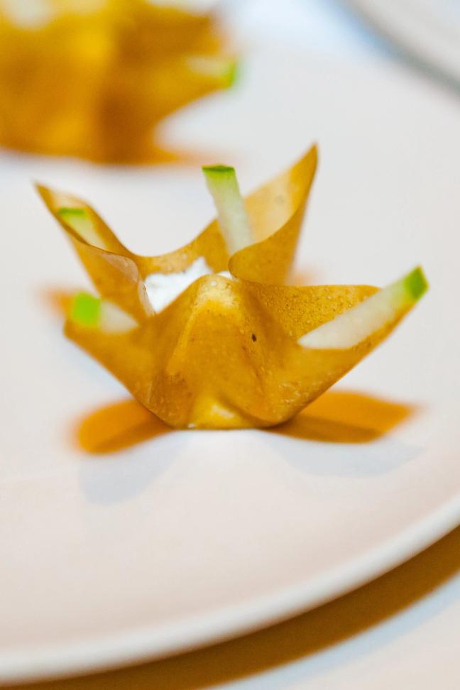 Up next came Berlingots — pasta parcels with gruyere and vacherin cheese, seasonal wild mushrooms, woodruff, barley and roasted hazelnut consomme. And, to pair with such fatty flavours, a 1998 Château Meyney.