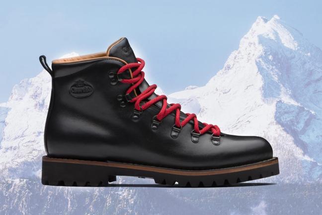Another recent example of the hiking boot aesthetic is the bold new ‘Eastrock’ design from Church’s. Burnished to a deep black finish with bold red ripcords of laces, they’re as ready for summits as they are for the streets. The best part? That lightweight ‘St Moritz’ soles — internally lined and with a contrasting colour mid-sole for a striking silhouette.