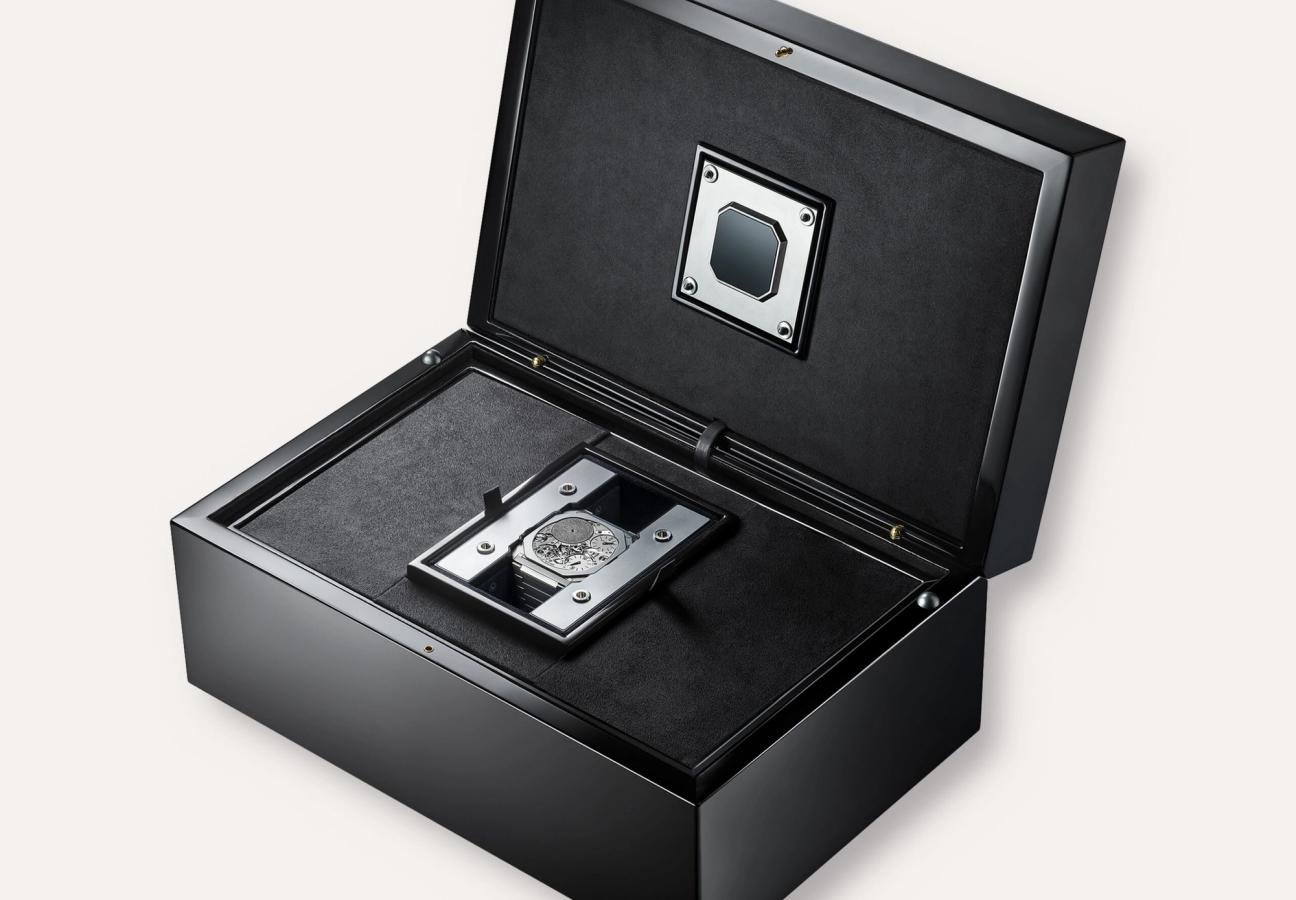 As the brand states: “Collectors can place the watch in the box next to a digital screen on which they programme the desired time. A button is then pressed to start the cycle and as soon as the precious box is closed, the magic happens while hidden from sight. Upon opening it some 20 seconds later, the owner will find the watch perfectly set to the desired time and fully wound – silently, delicately and with infinite precision.”