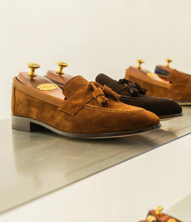 “Our goal is to bring the theatre of the factory into store, allowing customers to discover our handcrafted footwear in a contemporary space that complements the rich heritage of the business,” says William Church, the joint managing director of the company.