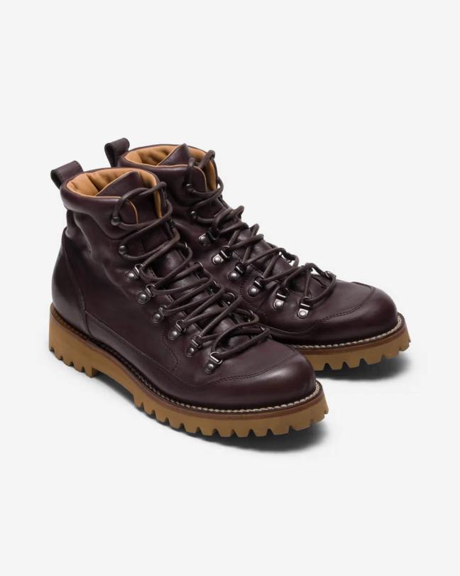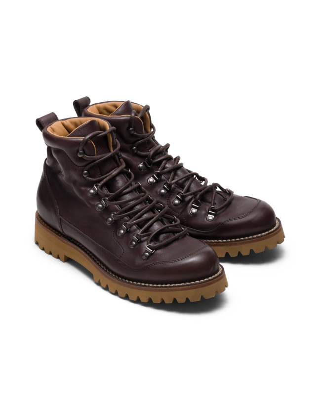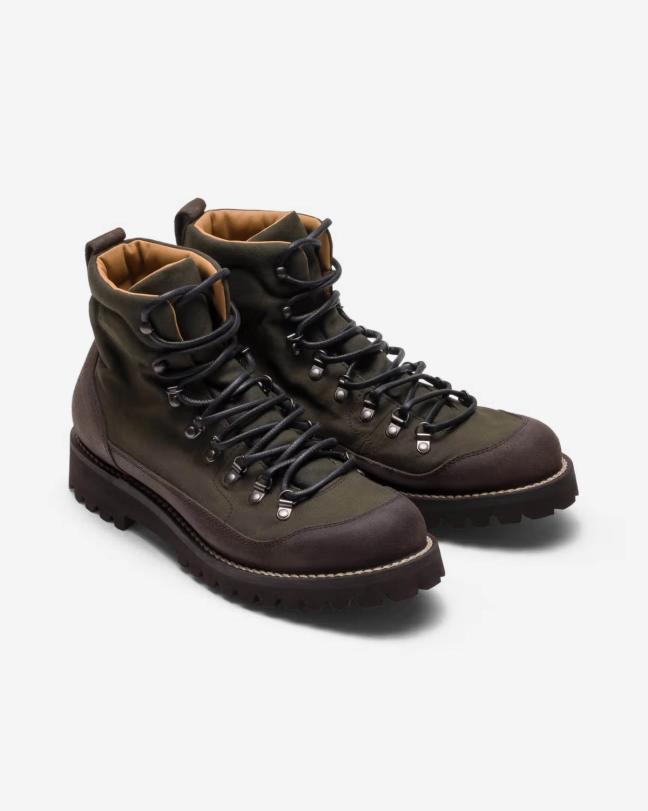 Part of the Regent family and built on last 133, The Shepherd is a mountain boot that balances technical performance with a contemporary aesthetic. The upper features exceptionally soft antiqued leather, paired with bi-material inserts in leather and fabric. It is offered in two variations: antiqued leather with striped cotton, or waxed suede combined with waxed cotton. Three interchangeable lace options allow for personal expression while reinforcing the boot’s versatile character.