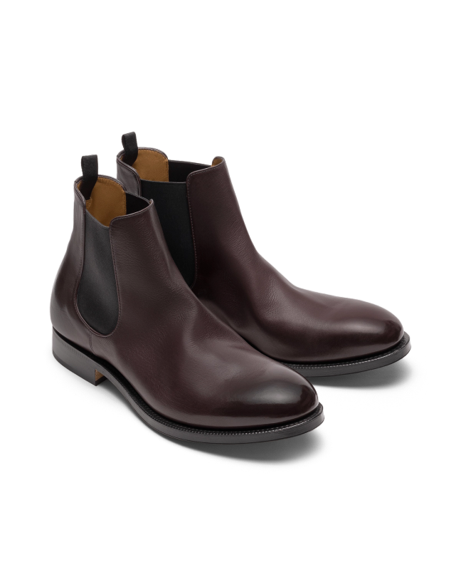 A modern interpretation of the iconic Chelsea boot, The Stanhope belongs to the New Formal family. Leather options range from a bright calf with a rich, deep finish to a lightly antiqued calf that delivers a deliberately worn-in appearance. The leather sole, crafted with a double-layer Goodyear welted construction, features its tread left in a natural colour, underscoring the shoe’s understated sophistication and artisanal integrity.
