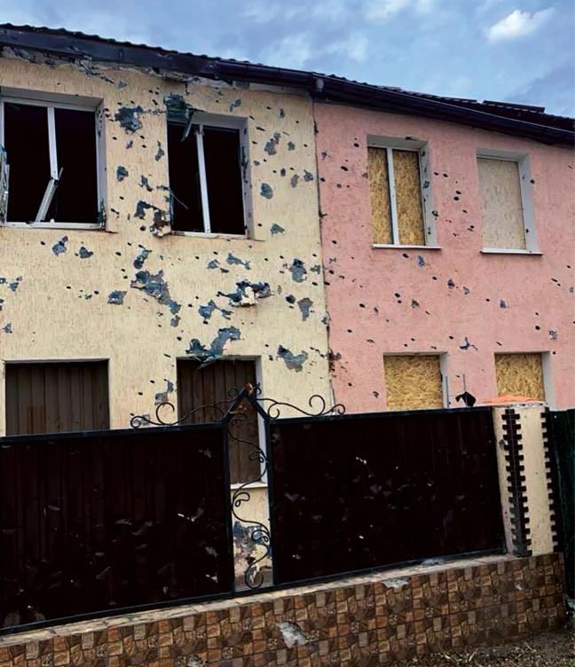 Civilian housing damaged by artillery fragments in Mykolaiv, Ukraine