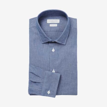 From Turnbull & Asser, this dark blue denim-cashmere shirt is the perfect blend of laid-back and luxury. Richard James has paired things back with its classic chambray — complete with the western pearl buttons as a nice nod to denim’s utilitarian beginnings. And Eton has a reliably chic take on the idea, with soft lightweight denim available in two fits.