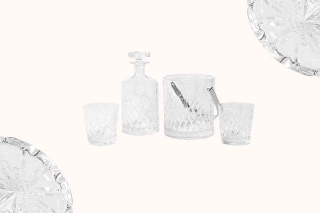 Made from weighty, mouth-blown crystal that’s been hand-cut and polished for a perfectly smooth finish, you’ll get two rocks glasses in this set, along with a handsome decanted and an ice bucket. Drinking never looked so decadent.