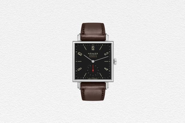 NOMOS Glashütte is going big. To mark 175 years of watchmaking, the brand has produced 175 examples of four new, square models. Our favourite is this black-dialled ‘Tetra Neomatik’ — edgy, striking, leather-strapped and fitted with a caliber that ticks with the highest standard of German craftsmanship.