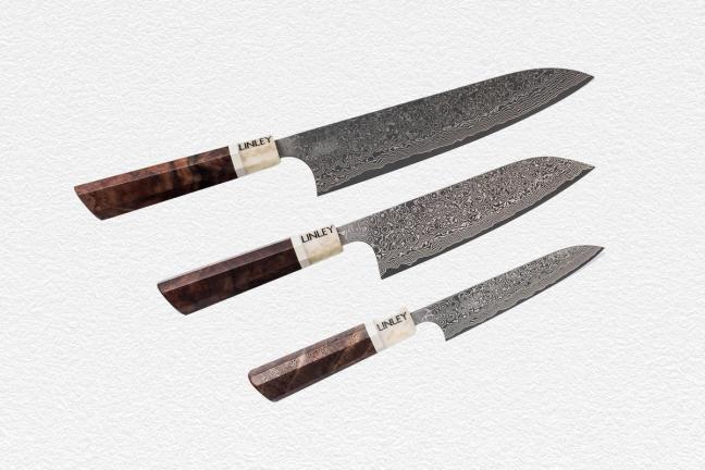 Linley has long sourced the best craftsmen and collaborators across the world — ensuring that the British brand delivers on quality time-after-time. This is the design house’s sharpest release yet; a set of three Damascus-blade knives with wooden handles, crafted in Japan by nokaji knife-makers.