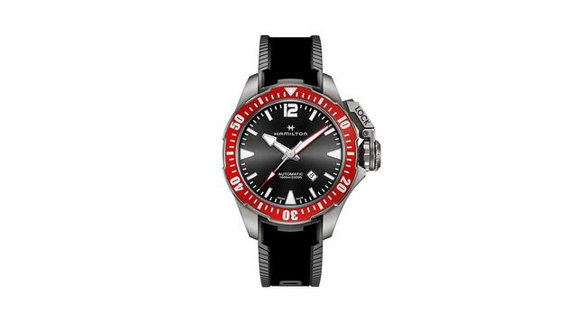 It is also water resistant to an ear-popping 1,000m – ideal if you’re planning to spend a holiday exploring the bathypelagic layer of the nearest ocean – and has an 80-hour power reserve thanks to some subtle frequency modifications of Hamilton’s H-10 automatic caliber.