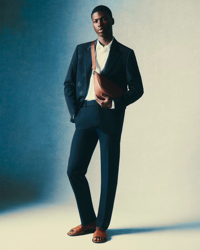 The Summer 2025 collection takes its cues from Dyson’s jaunt, and a colour palette comprising garments in coral red, sandy terracotta, seafoam and ocean blue are perfect for the warmer months. In tune with the craftsmanship behind film, the collection is rich with the reputable savoir faire of the Fendi ateliers, and suiting is embellished with intricate bead detailing while swim shorts and vests are cut from thick, sweat-wicking cotton.