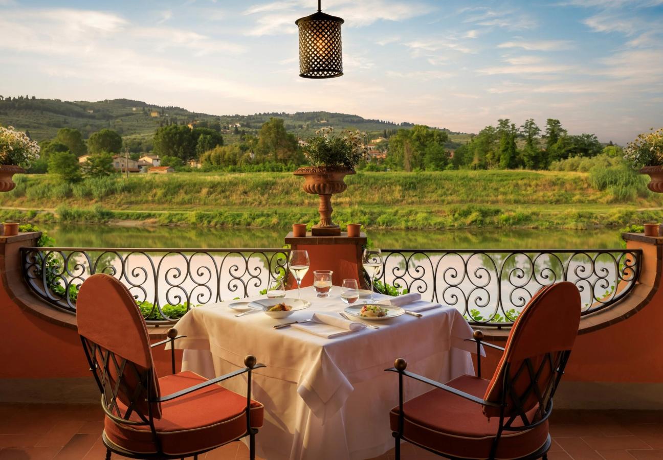 Standing on the terrace of Il Verocchio — the only restaurant in Florence with a terrace above the Arno, by the way, a fact even Wikipedia overlooks — you can see the rolling green of Tuscany to your right, the horizon punctuated by the odd terracotta rooftops and stately cyprus tree. To the left you can vaguely sense the pull of Florence, and the bustle and promise of an evening in town, perhaps — at vaunted, low-key trattorias like Camillo (have the chicken curry) or the brilliant, tiled Sostanza (buttered chicken). But in the middle there’s everything you need for now — including Florentine steaks as thick as large-print bibles, and bellinis prepared with moving pomp and ceremony. (They do this clever thing where they swirl the fresh peach juice around the birthday balloon-sized glasses so it coats every centimetre.)