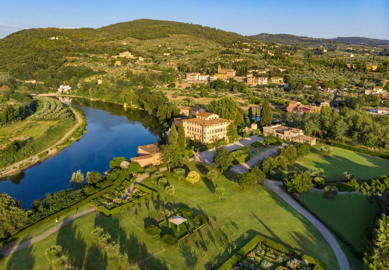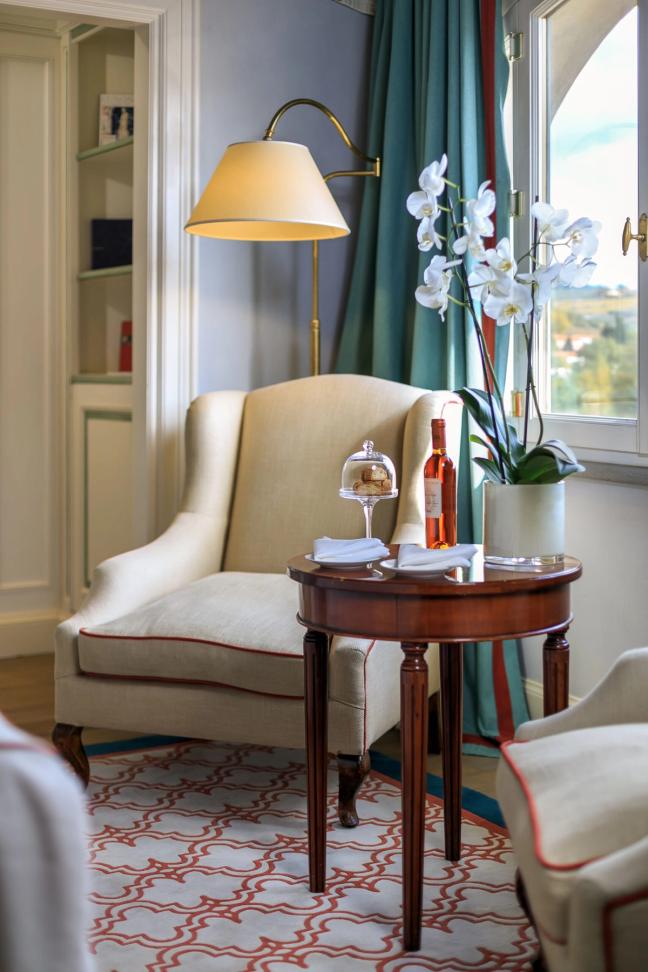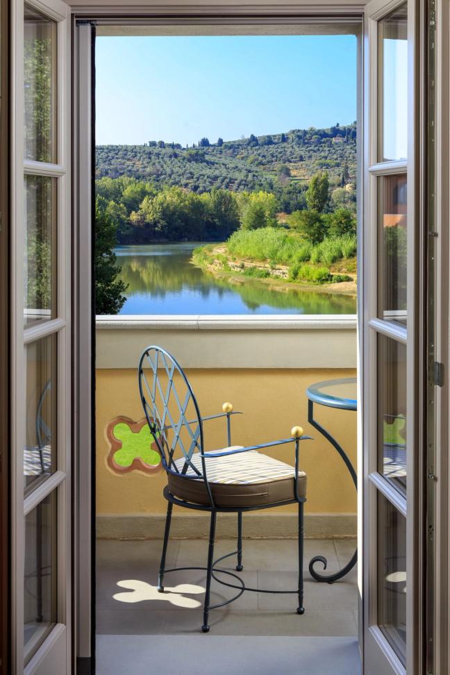 Or you could just zoom out a bit. Take a step back. That’s what Villa La Massa has done, at least. This is the private-palazzo-turned-hotel that sits on a serpentine curve of the River Arno, some four miles from the centre of the city, lounging in cool serenity behind some vast, ivy-clad gates. You do not know it’s there until, suddenly and quite wonderfully, it is — a pleasingly solid and square mansion, sat atop huge river embankments and apparently clad in a vanilla crema pasticcera.