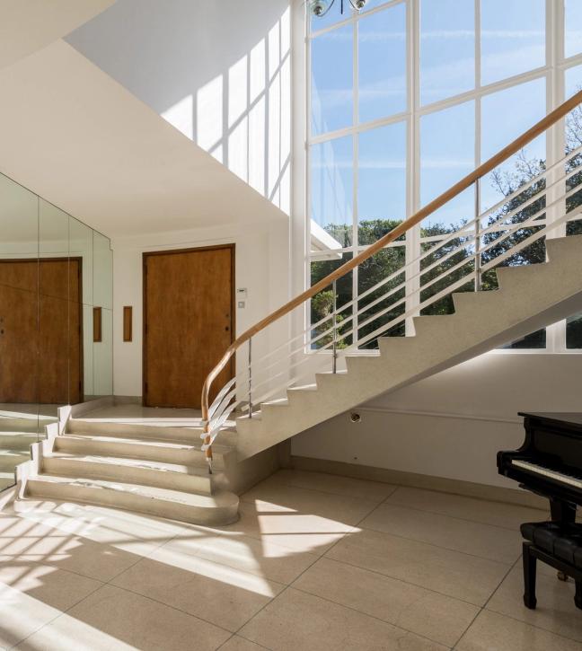 This circular home was designed by fabled Australian architect Raymond McGrath (who designed the interiors of the iconic Broadcasting house, the BBC’s headquarters). You’ll see his artistic fingerprints all over this property which he once described as “a big cheese with a slice cut for the sunlight to enter the whole house.”