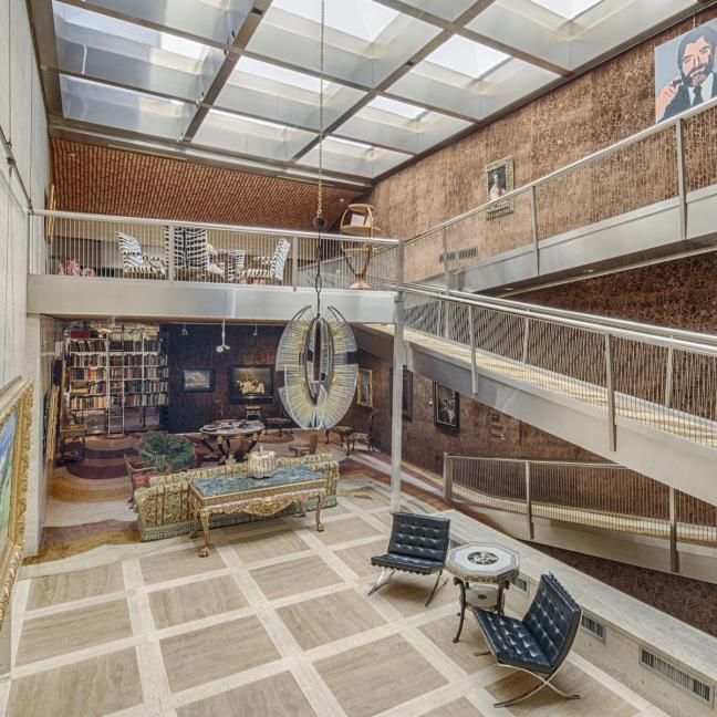 Commissioned by the endlessly inventive Sherman Fairchild, this Upper East Side property was one of the very first modernist townhouses in New York, and is still a benchmark in progressive residential design. The pièce de résistance of this home is at its very centre — a three story great room lined with travertine and illuminated by the grid of skylights above.