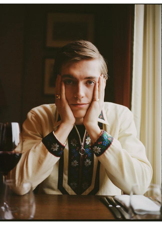 BODE SWEATER, £867; COS T-SHIRT, £45; SCOTT FRASER COLLECTION TROUSERS, £280; LONDON SOCK CO SOCKS, £15; G.H. BASS LOAFERS, £150; CHAINED&ABLE CHAIN, £140;