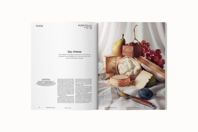 New Year, new us! Only not really. If it ain’t broke, don’t fix it, we always say – and what could possibly be broke about a beautifully lit double-page spread of some of the finest (and most pungent, if I recall correctly) soft cheeses on the planet? This, and much more, greets you in our stalwart Portfolio section. There’s the wonderful Adam Pearson. The joys of Cristal Rosé. The CEOs guide to January wellness (hint: it doesn’t necessarily involve Cristal Rosé.) The return of the pea coat. The finest cars of the year. And caviar by the bucketload.