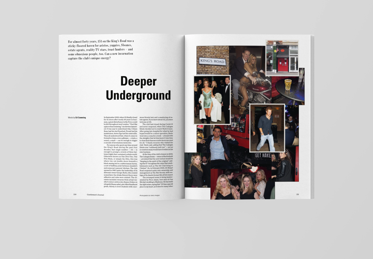 Oh, and lots of things that aren’t strictly sporting, but are nonetheless highly interesting, too. Like legendary editor Graydon Carter on feuding with Trump, expense account mayhem, and the golden days of magazines. Some excellent red Burgundies that won’t trigger bankruptcy proceedings. The 50 most tasteful people in London. Master hotelier André Balazs’s next move. An unofficial guide to gatecrashing members’ clubs. Excellent moisturisers. And the oral-history of 151, Chelsea’s most beloved/dubious underground haunt.