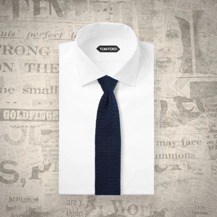 Always infuriatingly loose, Tommy’s ties in particular always feature stripes or patterns. Recreate that style with such subtly patterned offerings as this silk-jacquard tie from shirtmaker Emma Willis, or this geometrically patterned accessory from Drake’s. Or, like young Finn Shelby, go for a textured knitted option, like Tom Ford’s storm-blue silk tie.