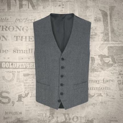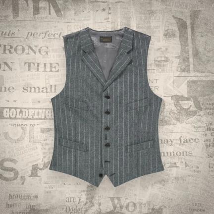 Calm colours and textures are the way to go here. From Gieves & Hawkes, this houndstooth option is contemporary with a traditional twist. Chester Barrie’s Berkeley waistcoat features the silk back favoured by the more stylish of the Shelby family, and New & Lingwood offers a chalkstripe waistcoat with lapels — for a touch more detail.
