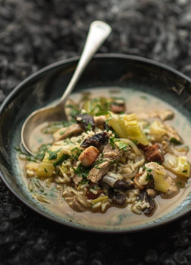 “Cock-a-leekie,” says Kitchin. “It’s one of the classic dishes of Scottish cooking – often referred to as Scotland’s national soup. Traditionally, it’s made with chicken, but I’m such a fan of game at this time of year that I’ve given it my own twist by swapping the chicken for pheasant”.