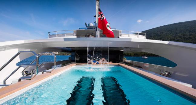 A six-metre, glass-bottomed infinity pool is arguably the vessel’s most impressive inclusion. With spa jets for hydro-massage and waterproof sound system, guests can use it for relaxation or recreation.