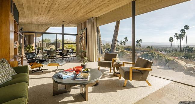 Large, floor-to-ceiling walls of glass (which are just as modern now as they were in the fifties) on all perimeters of the three-bed, three-bath residence allow a plethora of light and desert scenery to be experienced – making the interior decor feel exposed, a revolutionary intention of the Desert Modern style which brought the vastness of nature into the home through open-plan living.