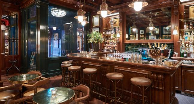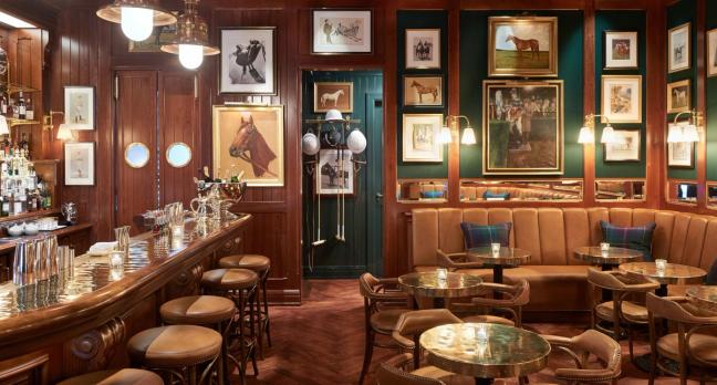 With its dark wood panelling, billiard green walls and brass-topped bar, you’d be forgiven for thinking that Ralph Lauren’s newest bar was nestled in an upstate New York country club – an impression the polo mallets hanging from the wall do little to refute.