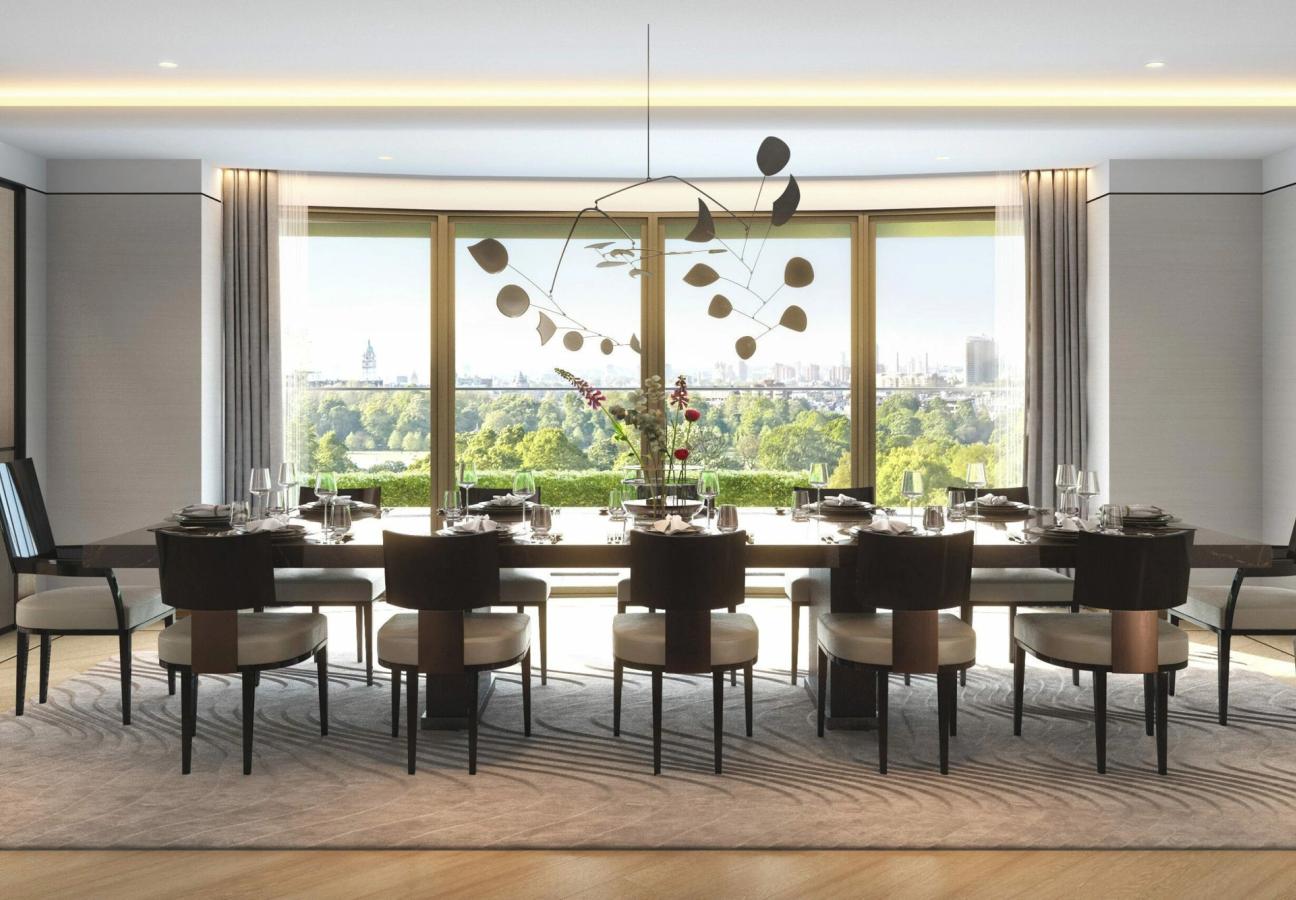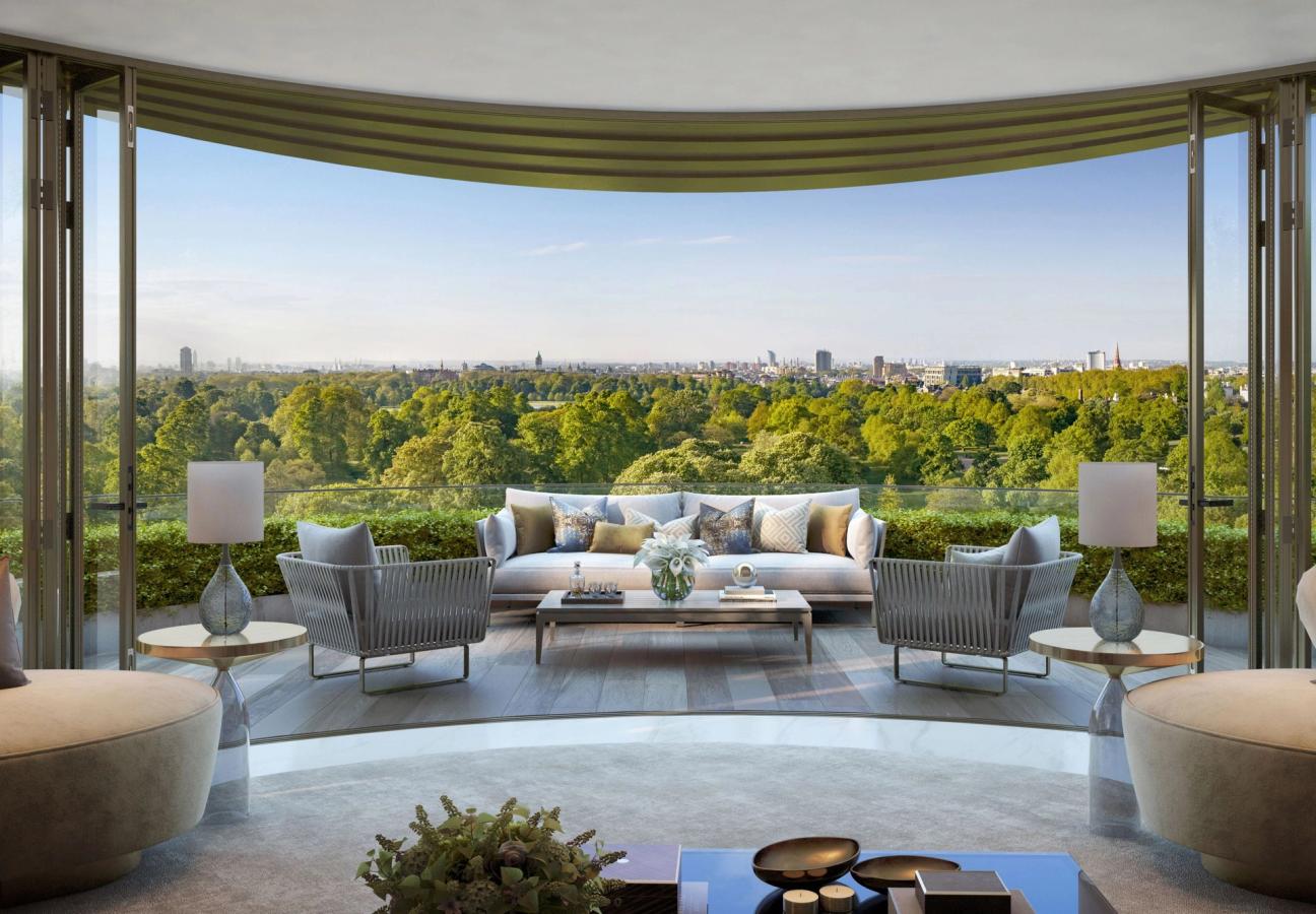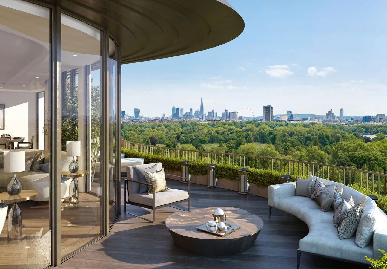 The luxury accommodation spans nine floors, all of which feature dizzying ceiling heights and floor-to-ceiling glazing opening onto individual private terraces. As views go, these vistas can’t really be beaten; residents will have a front row view of Hyde Park, and can gaze out at the London skyline every morning with their first mug of coffee, imprinting the London Eye on many a retina.