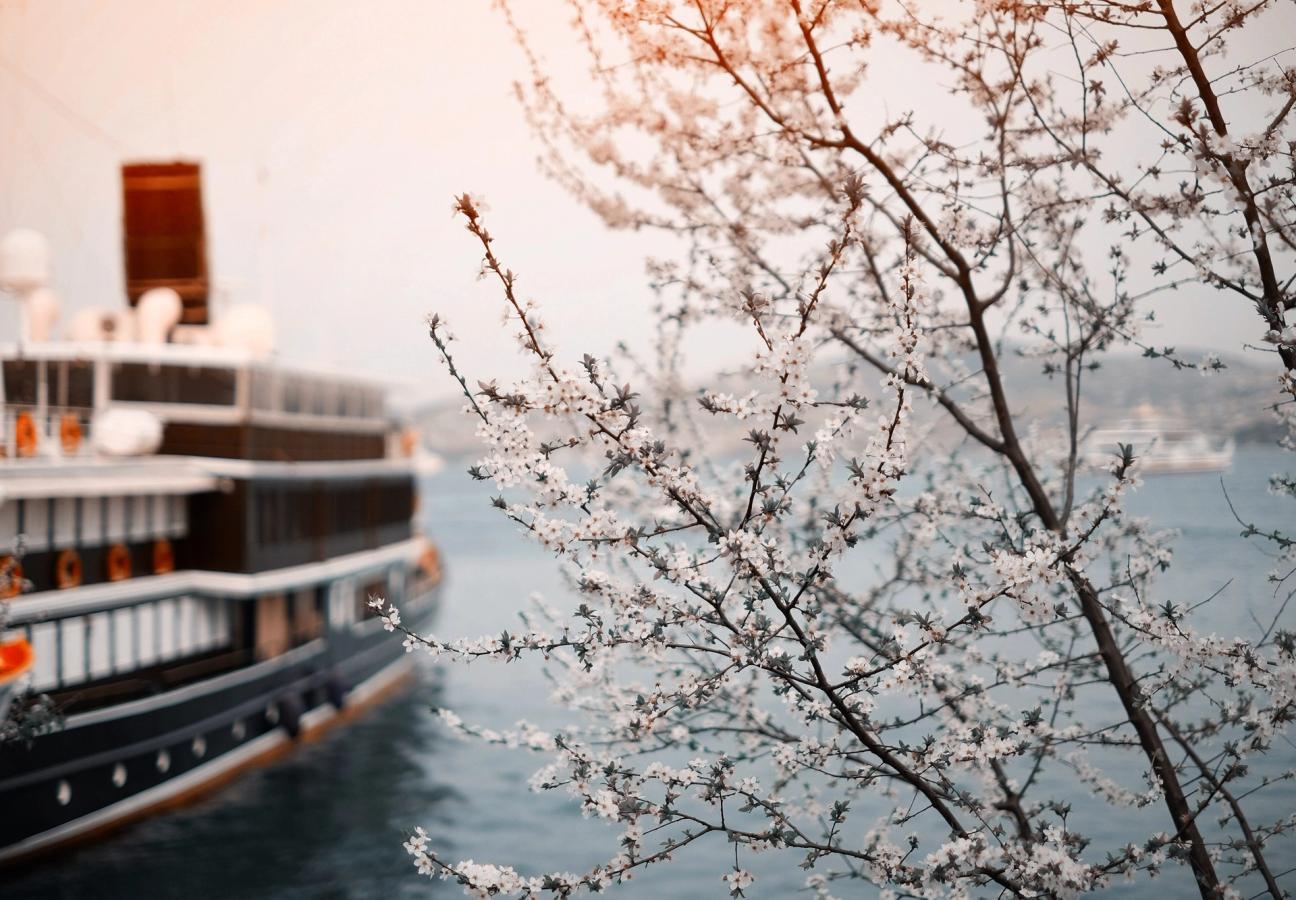 It soon does, although I put that down less to my mariner’s constitution and more to the spectacle of the city. Through the mist and the mizzle, I can make out parades of imperial pavilions sitting pretty alongside old Sultans’ palaces. Flags wave at us limply, and the revolving doors of grand hotels spin with the ghosts of illustrious past guests.