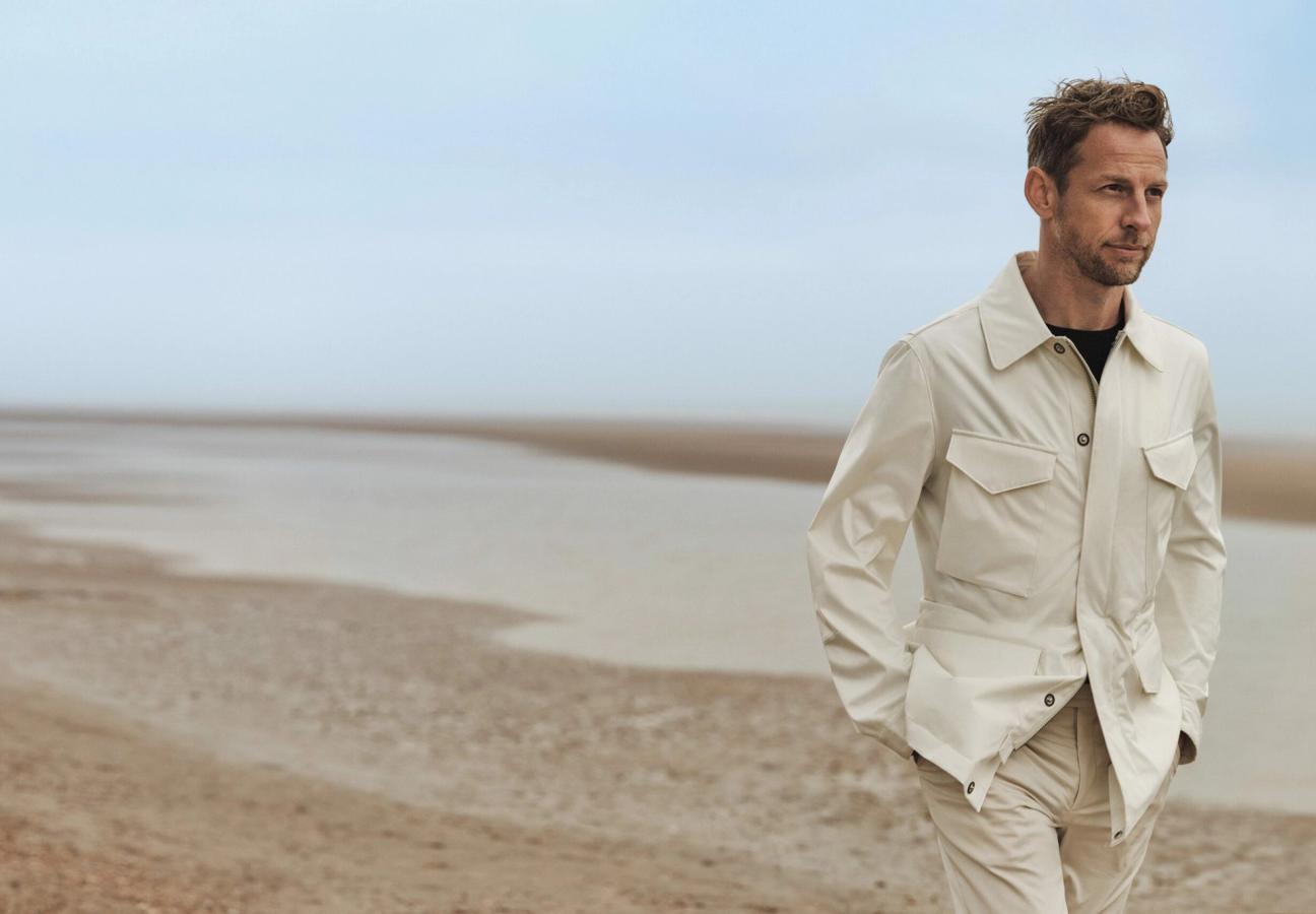 Button, 42, whose seventeen-season Formula One career concluded in 2016, seven years after clinching the world championship for Brawn GP, is currently plugged into the rhythms of what he calls his second life, on the West Coast with his wife, Brittny Ward, a model, and their two children. “It’s nuts here,” he says of his adopted city of LA. “Everyone is in a rush to get somewhere, but I don’t know where they’re going. Where we are, it’s close to the coast, we’re ten minutes from the beach, which is really nice. And we go into Malibu and… we’re very lucky,” he says with the timbre of a man who’s married to a model, is close to the coast, lives ten minutes from the beach, goes into Malibu, is very lucky – and knows it.