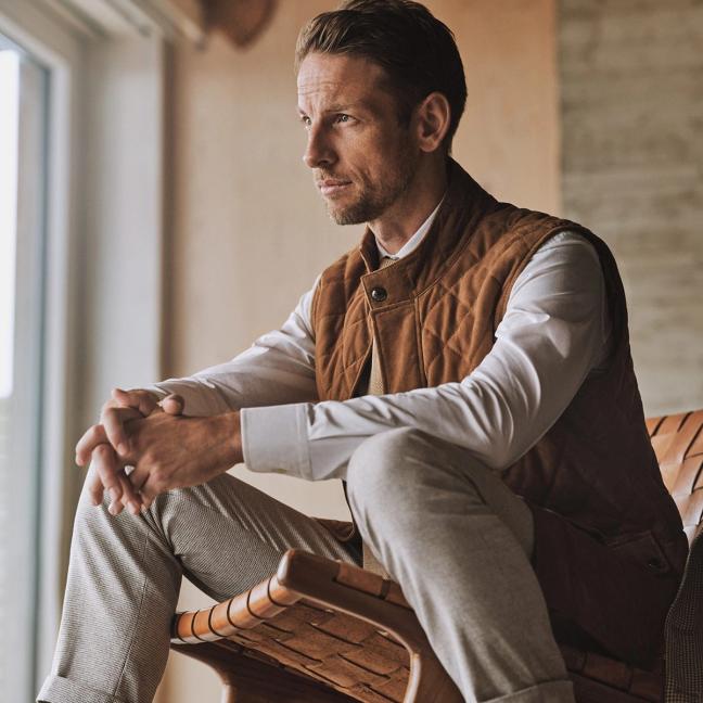 An encounter with Jenson Button can be a cruel thing for your own self-regard, the type of occasion that makes you question all the choices you’ve made up to that precise moment, from your bachelor’s degree to the fit of your trousers to whether or not you needed that extra cube of sugar with your macchiato or why you’re even drinking a macchiato instead of a protein supplement. The transatlantic Zoom call we’re both on beams the Formula One champ from his Los Angeles home to my laptop in east London, his user screen framed by a bookshelf thronged with motorsports paraphernalia – the keepsakes of a life intertwined with the fast lane – and a face that only a mother and half the world’s population could love, a complexion so polished and well versed in interacting with a camera that it appears to glow from within, like a Grecian temple at dark.