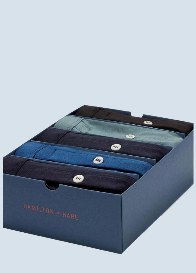 A set of soft and breathable boxer shorts in a selection of colours from superlative underwear brand Hamilton & Hare.