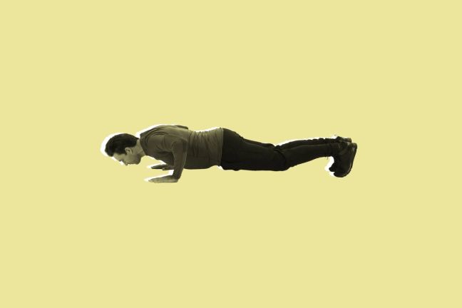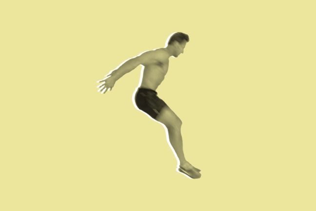 Begin by performing an on-the-spot sprint for 20 seconds, with your hands on your head — it’ll be a testing 20 seconds. Then go straight into these mountain climbers:
