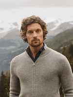 A throw-on item comes courtesy of the weighted, generously soft zip-cardigan in Dolomiti grey – a sartorial base that can be used as a main item when slipped over a T-Shirt or a button-down, or act as a mid-layer once the big, padded parkas and wool coats come out – and the options of denim shirts – which, in this campaign, is done in midnight blue – adds a formal, dressy slant with its Paramontura collar, mother of pearl buttons, and sleek, streamlined form.