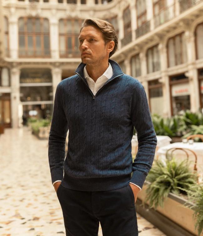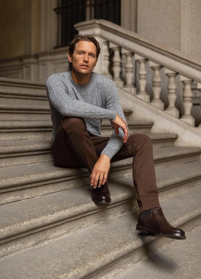 Even the more detailed, distinctive pieces — such as the ‘Cashmere Cable Knit Sweater’ above — have restrained ‘sprezzatura’ stitched into their well-woven designs. Colours from ‘Nocciola Brown’ to ‘Dolomiti Grey’ are so neutral and versatile that they’ll pair with almost anything else in your autumn-winter wardrobe — while still appearing effortless and elegant.