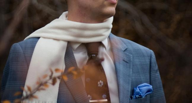 To achieve this look, take your suit jacket off and drape the scarf around your neck. Next, cross the two ends, put your jacket back on, and tuck these ends below your buttons. This will afford you a look that is both sleek and stylish, not jeopardising your formalwear, and giving you a little extra warmth.