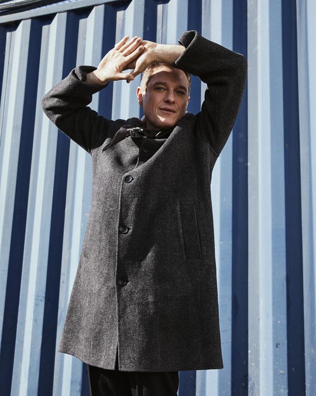 ACNE STUDIOS neckerchief, acnestudios.com; MR PORTER coat, mrporter.com; FRANKIE SHOP trousers, eu.thefrankie.shop.com