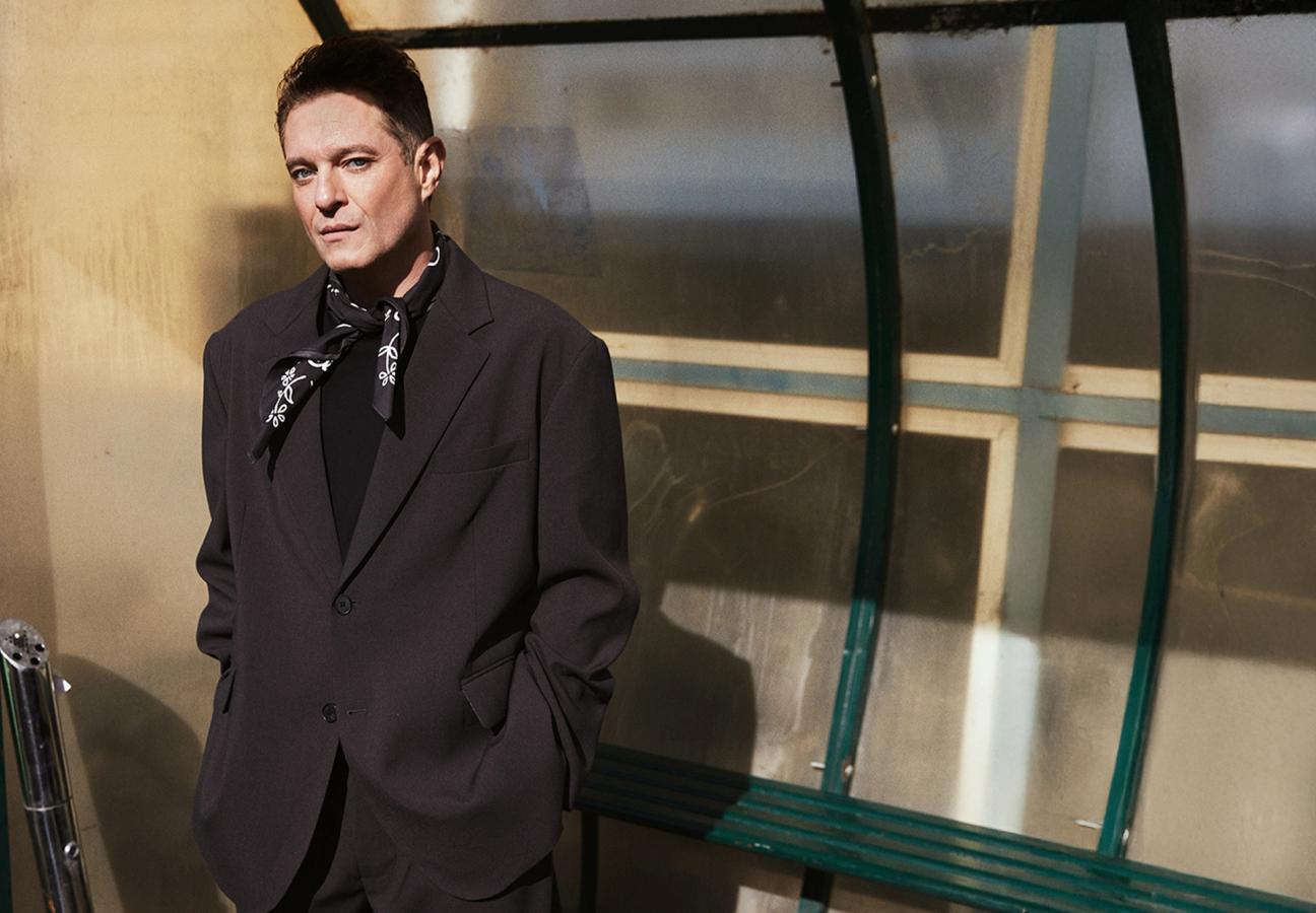ACNE STUDIOS neckerchief, acnestudios.com; SUNSPEL t-shirt, sunspel.com; THE FRANKIE SHOP suit, eu.thefrankieshop.com