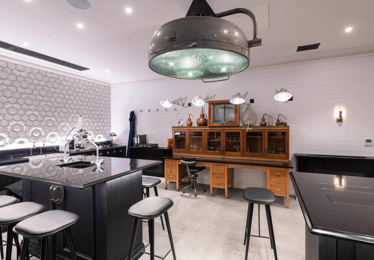 This is her sacred space, where she can tinker with as-yet-unknown recipes. It is also now a place where she can teach lucky VIPs and visiting bartenders about her craft — as the new distillery comes fitted with a classic-style lecture hall and the laboratory becomes a classroom.