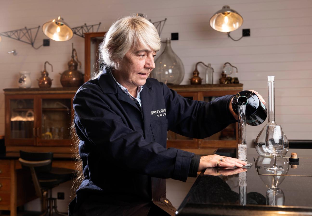 “I see these flavours as shapes”, Lesley explains, surrounded by laboratory walls stacked floor to ceiling with glass bottles holding every type of botanical curiosity. For Lesley, who perhaps experiences a form of Synesthesia, Hendricks is distinctly rounded in shape — the result of her unique blend.