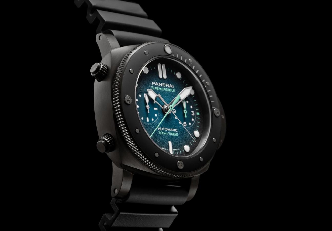 And all of these functions are all kept safe in the water — up to 300 metres down — thanks to Panerai’s unique crown locking system. It’s an iconic piece of engineering, and one which also gives the timepiece its iconic silhouette.