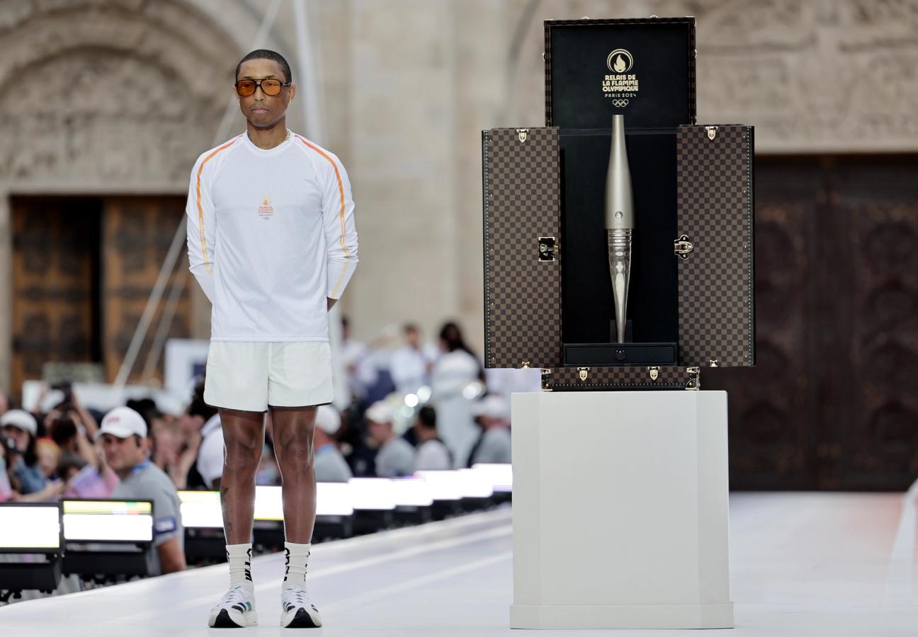 But LVMH's involvement didn't end there. The Prelude was a teaser for what was to come in terms of the conglomerate's involvement in the games. On the day of the Opening Ceremony, Pharrell was one of the final torch bearers (the torch is housed in a Louis Vuitton trunk), decked out in Louis Vuitton and his own Adidas shoes (a Skateboard P-designed Adizero Adios Pro Evo 1 performance runner).