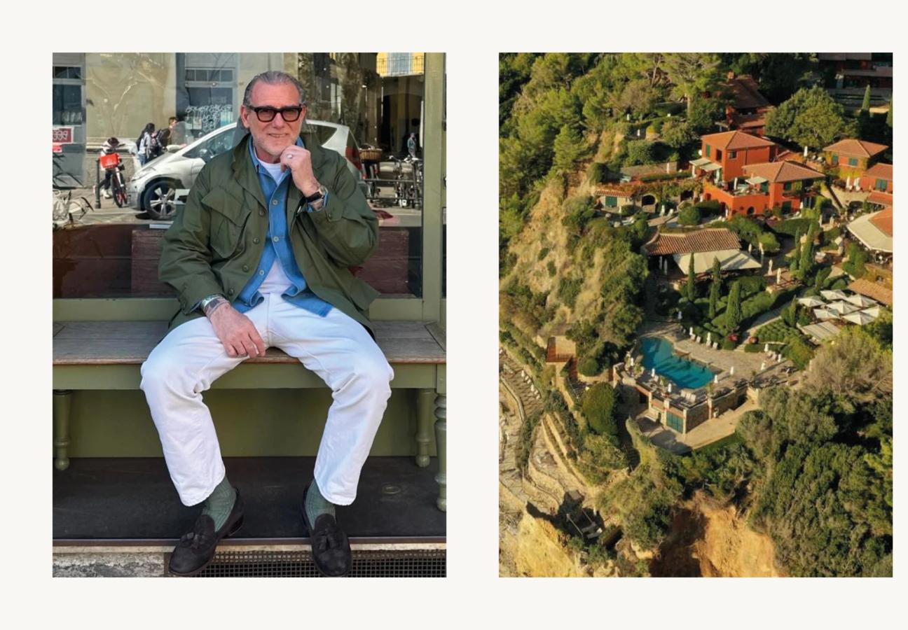 Alessandro wearing Fortela; an aerial view of Il Pelicano