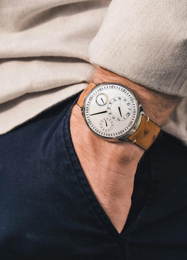 “By allowing myself the freedom to start with the function of the watch,” Mintiens tells Gentleman’s Journal, “rather than its movement. By setting free the two or three centrally-mounted hands. By literally starting with a blank sheet and saying; ‘Okay, how can I express time using the tool a watch should be?’”.